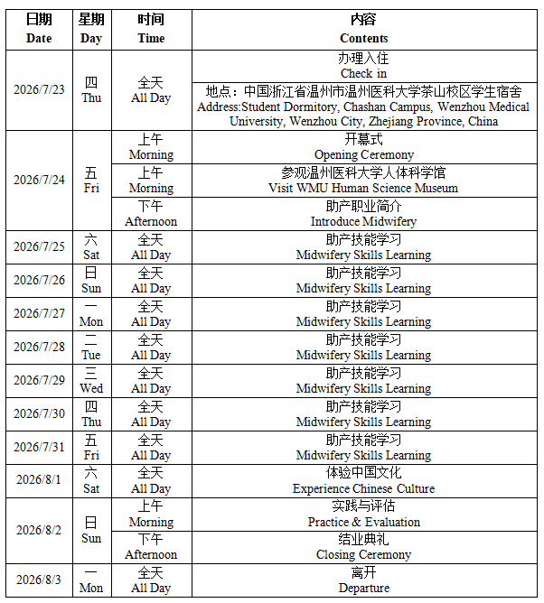 2026 Angel of Life for Africa Midwifery Assistants Training Program at Wenzhou Medical University will be from July 23 to August 3, 2026.
