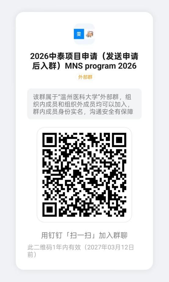 (3)注意事项:申请人应准确填写个人信息并提供真实材料,因信息填写错误、填报虚假信息而造成不能录取的,后果由申请人本人承担。申请人请于2026年5月15日前完成申请材料的上交。发送报名材料后请钉钉扫码加入2026年中泰项目申请群。