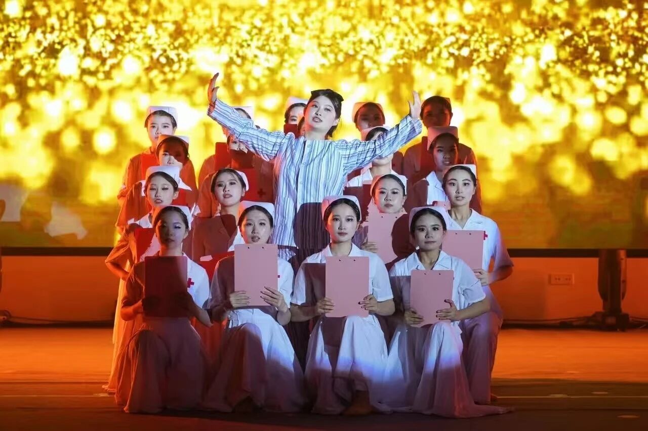 舞蹈《用爱守护》以护理学专业为背景,通过优美的肢体语言和富有感染力的舞台呈现,生动演绎了护理人员从懵懂学子成长为白衣天使的心路历程。节目巧妙融合了专业特色与艺术表达,将临床护理中的细致操作、医患间的温情互动转化为舞蹈语汇,既有护理工作的严谨与专注,又饱含对生命的敬畏与关爱。