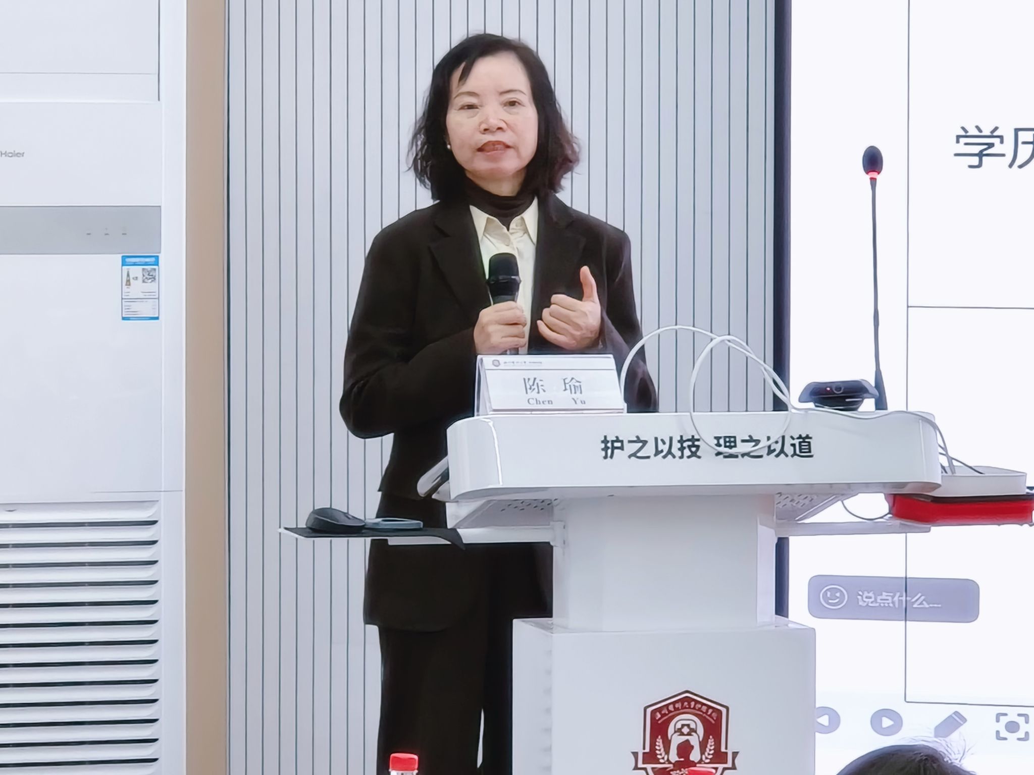 陈瑜副主任详细阐述了附属第一医院管理制度、规范化培训要求以及为研究生提供的平台支持,鼓励同学们以临床问题为导向,在实践中提升科研思维与解决复杂的能力。