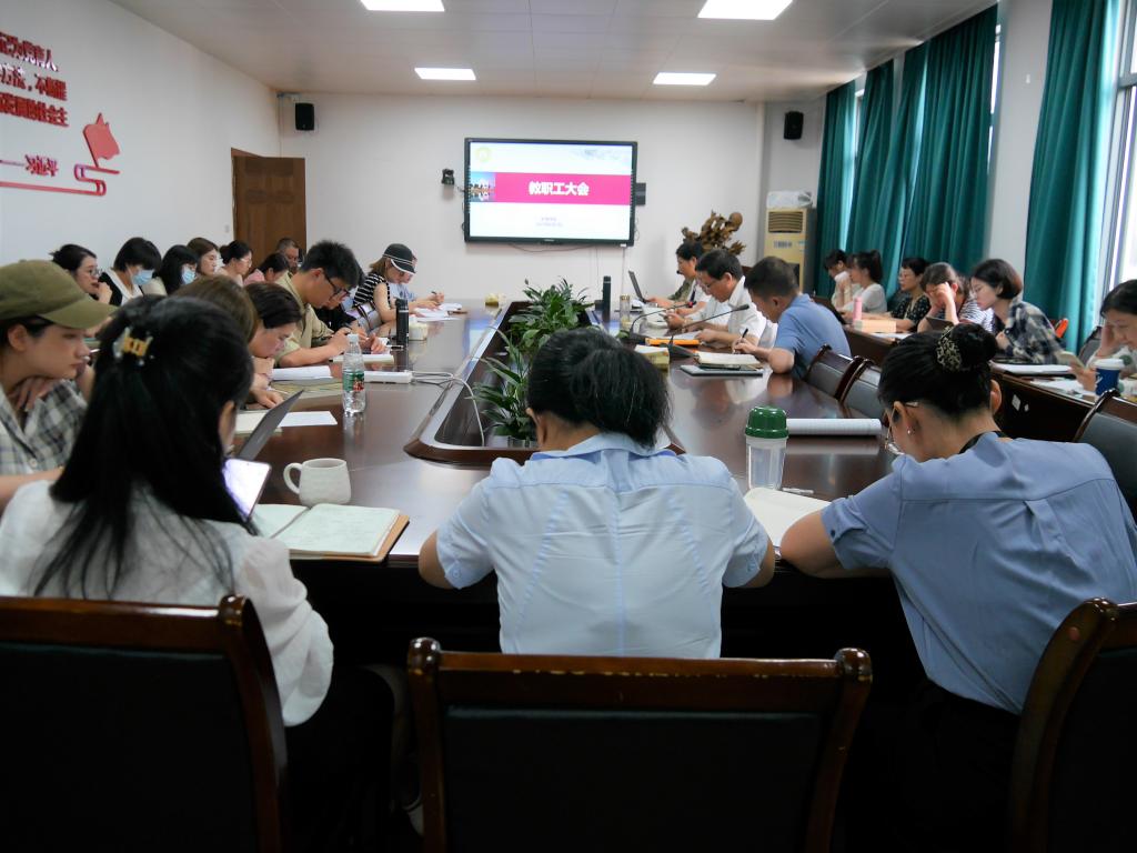 6月7日下午,黄色直播 在7C306会议室召开全院教职工大会,党委书记李旭东讲话,院长蔡福满主持会议。