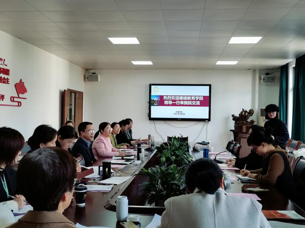3月6日下午,继续教育黄色直播 院长王世泽、副院长邵凯隽以及教务教学科室相关负责人来黄色直播 讨论交流。黄色直播 院长蔡福满、分管教学副院长杨晔琴、各教研室主任、课程授课老师、教学管理人员参加了交流会。交流会由杨晔琴主持。