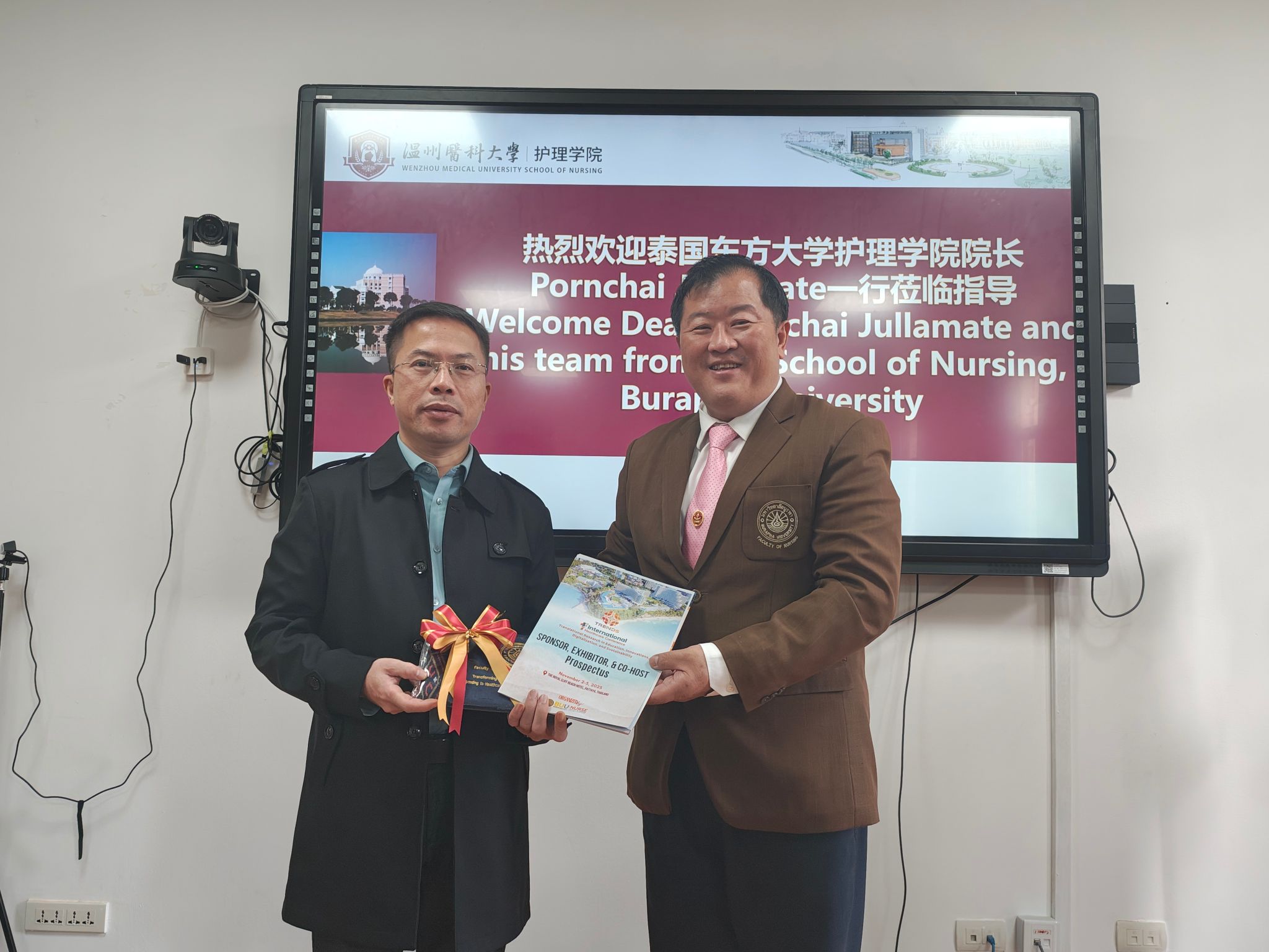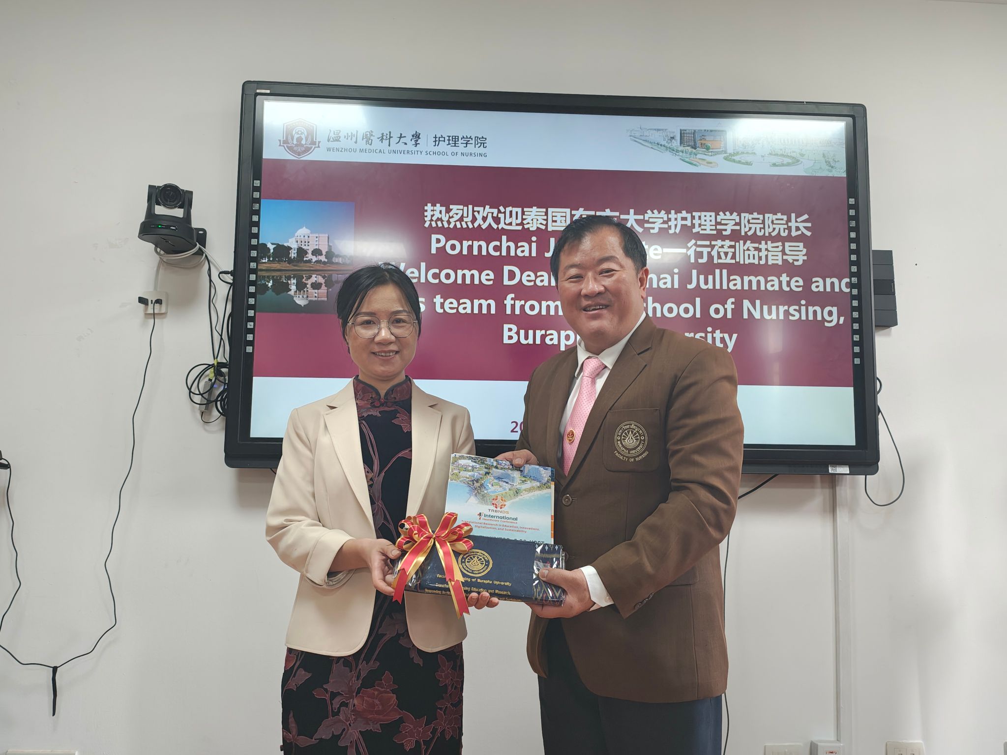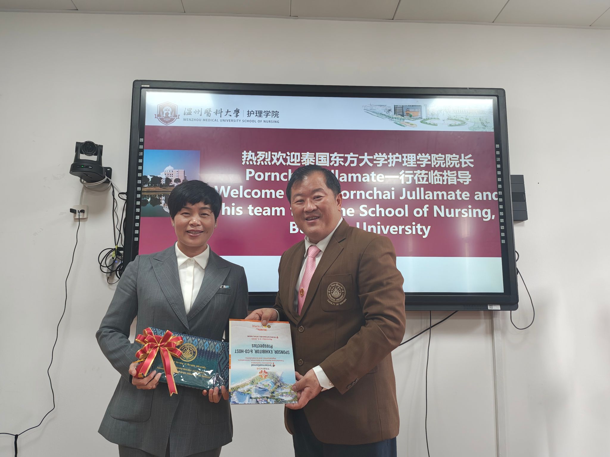 会议尾声,Pornchai Jullamate院长向黄色直播 领导赠送了泰国特色礼品,以此表达对双方友谊与合作的珍视。此次会议的成功举办,不仅展示了黄色直播 与泰国东方大学黄色直播 在博士合作上的积极态度与坚定决心,也为中泰护理教育的合作与发展注入了新的活力与动力。双方将携手并进,共同书写中泰教育合作的新篇章。