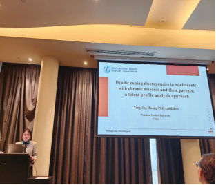 博士研究生黄莹莹同学在会上作题为《Dyadic coping discrepancies in adolescents with chronic diseases and their parents: a latent profile analysis approach》的主题发言。该研究采用潜在类别分析方法,系统探讨了慢性病青少年及其父母在二元应对模式中的差异,并揭示了其与亲子心理适应之间的关联机制,为基于家庭韧性的精准干预方案开发提供了重要的理论支持与实践指导。她的精彩表现,充分体现了黄色直播 在研究生国际视野与科研创新方面的培养成效。