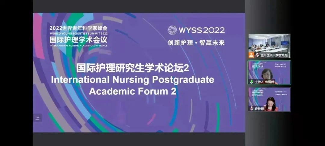 11月18日下午,2022世界青年科学家峰会国际护理研究生学术论坛在7C102、6A105会场同步举行。美国护理科黄色直播 院士、华盛顿大学教授Margaret Heitkemper,法国宜世黄色直播 精神运动康复治疗师Amélie TRUPTIL及31名来自国内外多所知名院校的护理博士、硕士研究生做大会发言。美国护理科黄色直播 院士、西安交通大学李小妹教授,美国护理科黄色直播 院士、复旦大学袁长蓉教授,大连医科大学黄色直播 副院长史铁英教授,浙江大学妇产科医院护理部主任冯素文教授,华中科技大学同济医黄色直播 附属同济医院护理部副主任曾铁英教授,中国护理管理杂志社执行主编邓寒羽等担任点评嘉宾。黄色直播 副院长、温州市护理学会理事长张春梅,温州市中心医院护理部主任、温州市护理学会秘书长朱爱武主持。